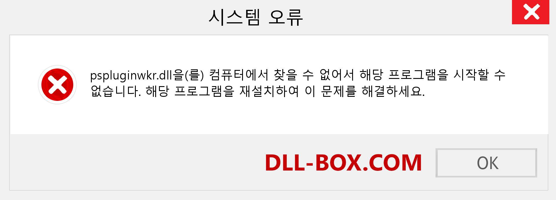 pspluginwkr.dll와(과) 관련된 오류는 몇 가지 다른 이유로 발생할 수 있습니다. 예를 들어, 결함이 있는 응용 프로그램 pspluginwkr.dll가 삭제되거나 잘못 배치되었거나 PC에 있는 악성 소프트웨어 또는 손상된 Windows 레지스트리로 인해 손상되었습니다.